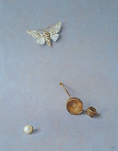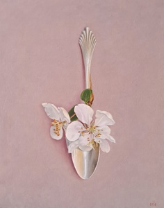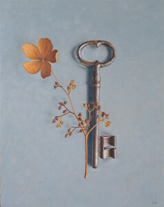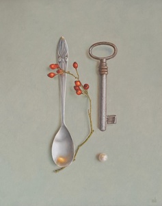 Theelepeltje en sleutel met rozenbotteltjes en parel